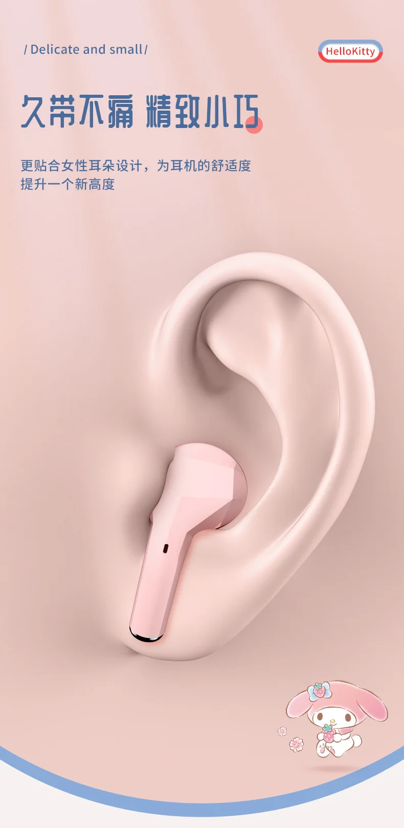 Sanrio Kawaii Cinnamoroll Kittys My Melody Anime Wireless Bluetooth Headset 5.0Tws Semi-In-Ear Square Headset