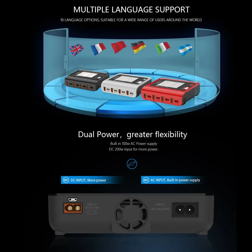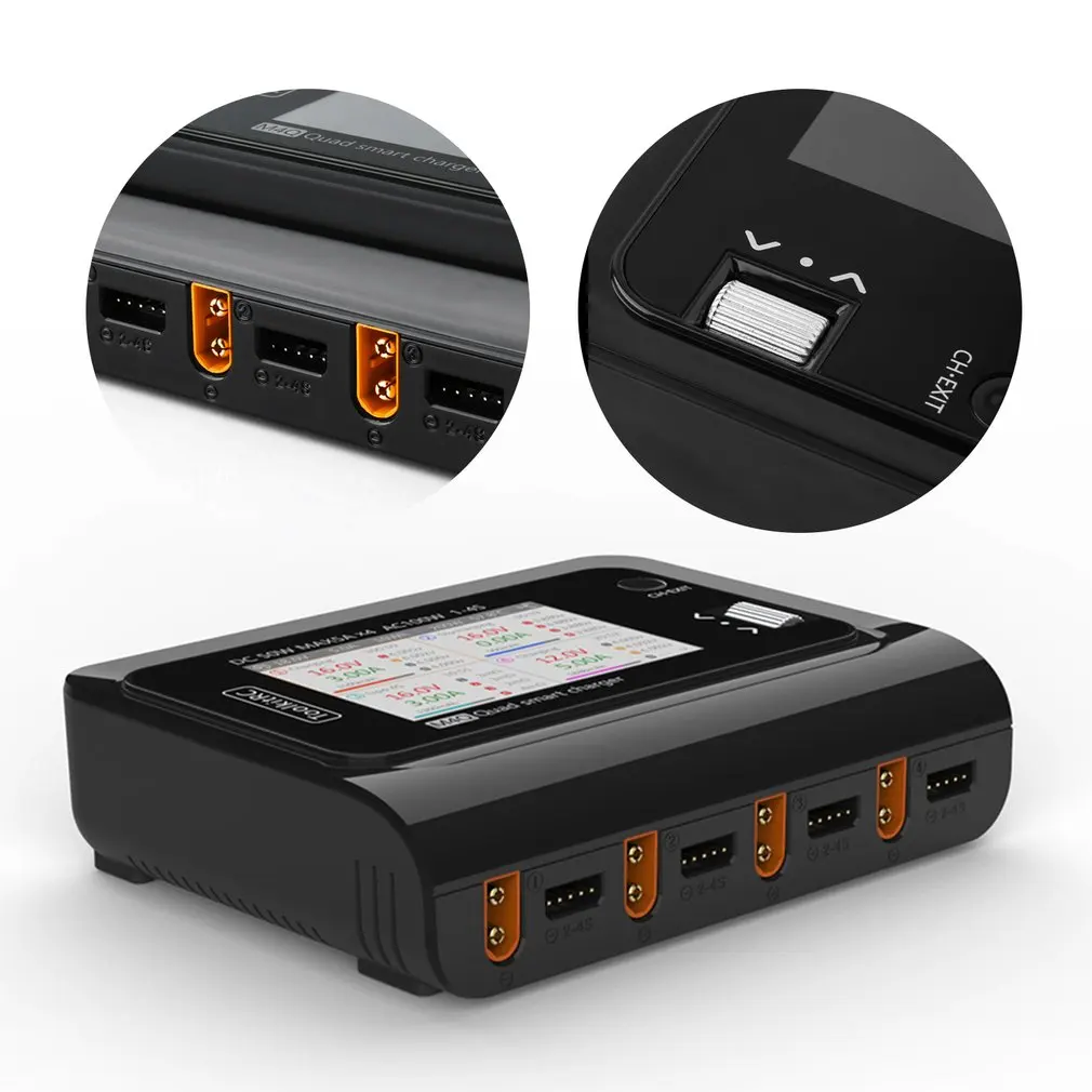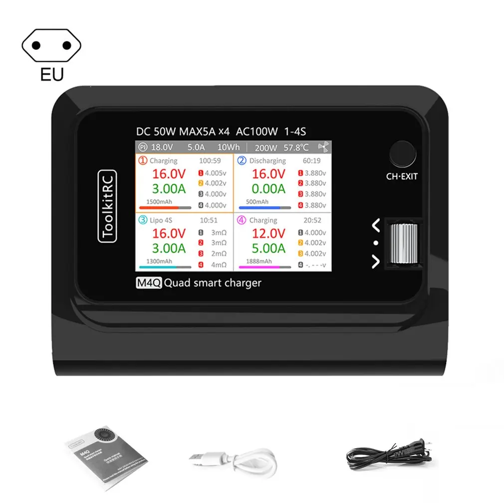 ToolkitRC M4Q 4x50w 5A AC 100W 4 DC XT60 Ports Smart Charger 32 Bit ARM IPS Bright Clear Wide Angle Display