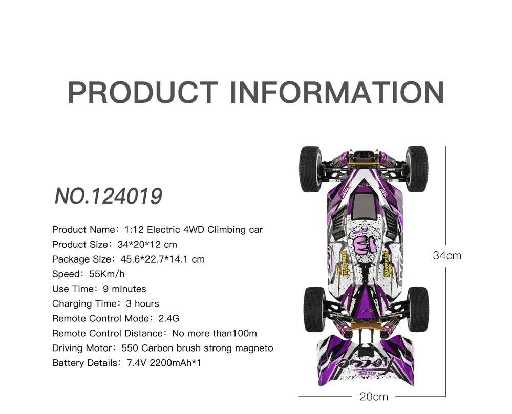 Wltoys 124018 124019 RC Car 1/12 Scale 60KM/H High Speed Racing Car 2.4G 4 Wheel Drive Metal Chassis Shock Absober VS 12428