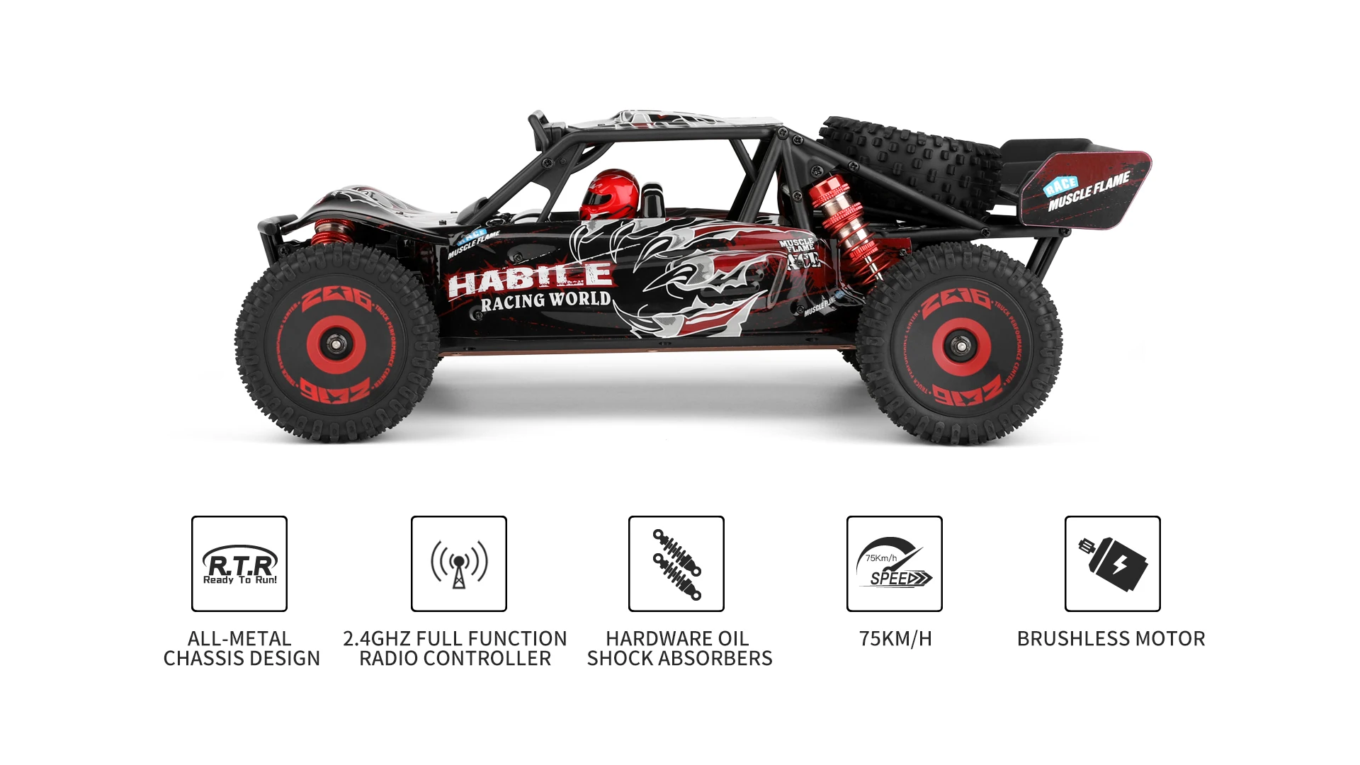 WLToys Upgraded 124016-V2 4WD 75KMH High Speed Car With Metal Chassis Brushless Off-Road RC Truck