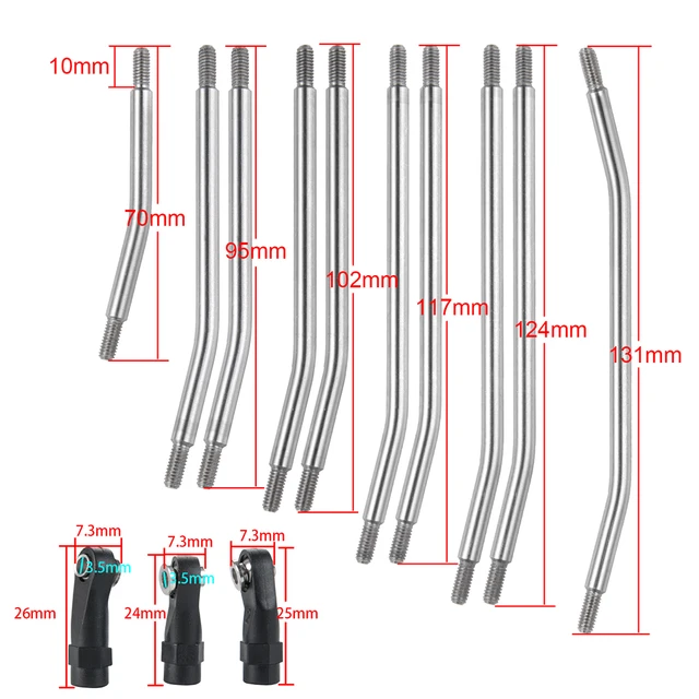 YEAHRUN 313/324mm Metal Link Set Sturdy Vehicle Linkage 5mm Steering Rod with Nylon End for 1/10 RC Crawler Axial SCX10 II 90046