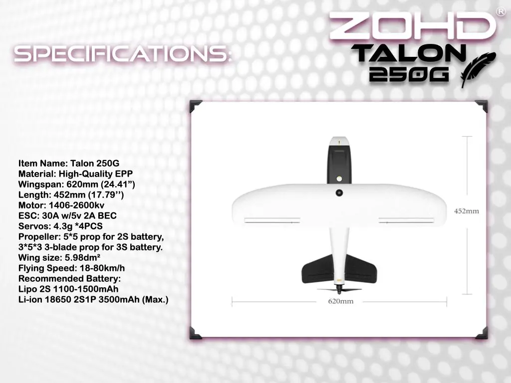 ZOHD Talon V-Tail EPP Electric Aircraft RC Airplane PNP/FPV Version Remote Control Drone Outdoor Toys for Children Plane Model